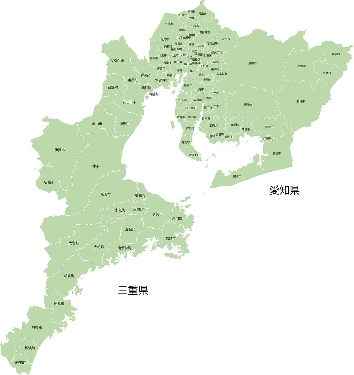 愛知県、三重県・桑名市、東員町、朝日町、川越町、四日市市、いなべ市、菰野町、鈴鹿市、津市